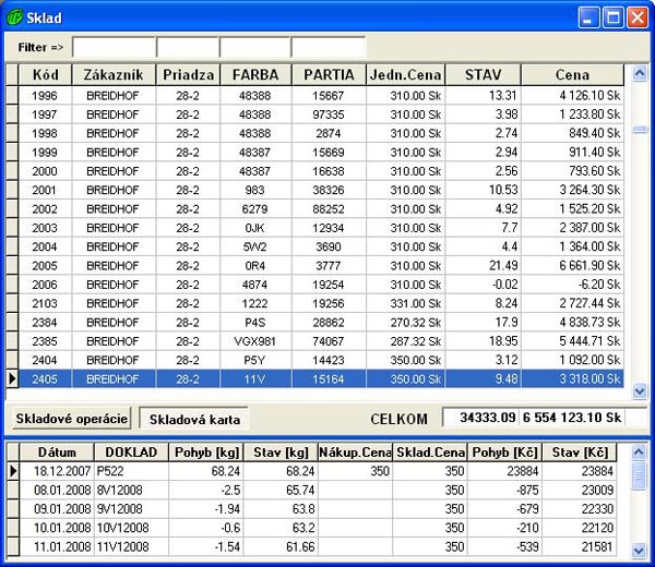 - evidenciu skladu
