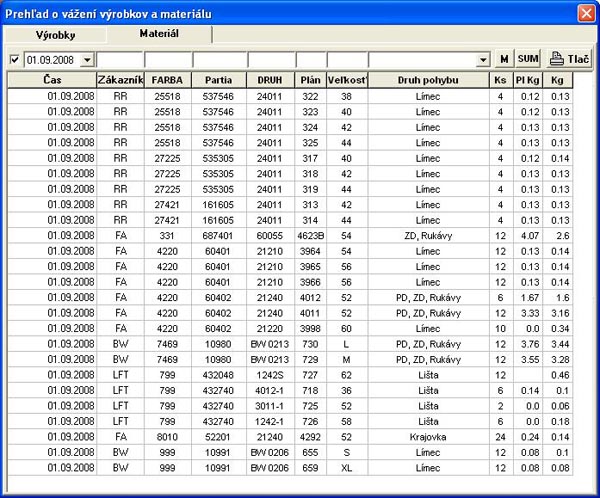 Obsahuje široké spektrum tlačových výstupov a sumárnych štatistík vrátane materiálových a cenových kalkulácií.