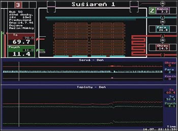 technologický grafický panel jednej sušiarne umožňujúci